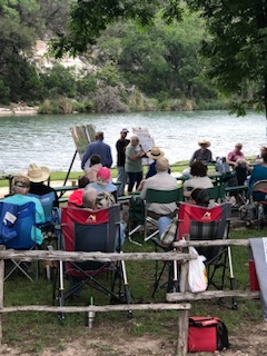 On May 20, 2023, a large group signed up and travelled along the scenic South Llano to the Lee Pfluger ranch and the beautiful springs. This tour and historical program has been going on over 21 years. We are grateful to Mr. Lee Pfluger for sharing this beautiful Hill Country Landmark with us.